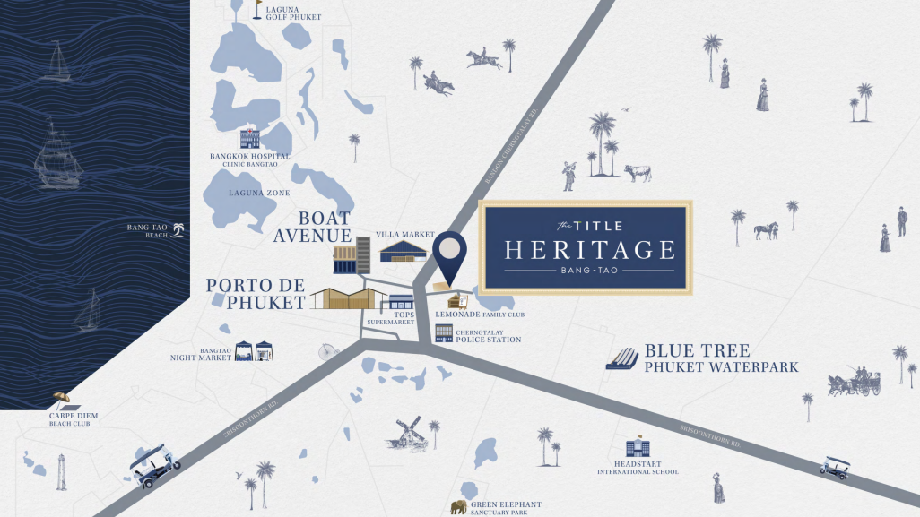Проект «Heritage» от известного в Таиланде застройщика Rhom Bho Property PLC располагается в оживленном районе о. Пхукет вблизи пляжа Банг Тао и представляет собой семь семиэтажных зданий, часть из которых соединена мостиками на крыше, а также два отдельных здания для парковки.
